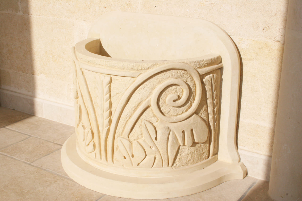 We work with high-quality stones such as Pietra Leccese, Carparo, Tufo, and other local varieties, shaping them by hand according to the client’s vision. Every creation is one-of-a-kind, born from experience, artistry, and a deep appreciation for sculptural tradition.