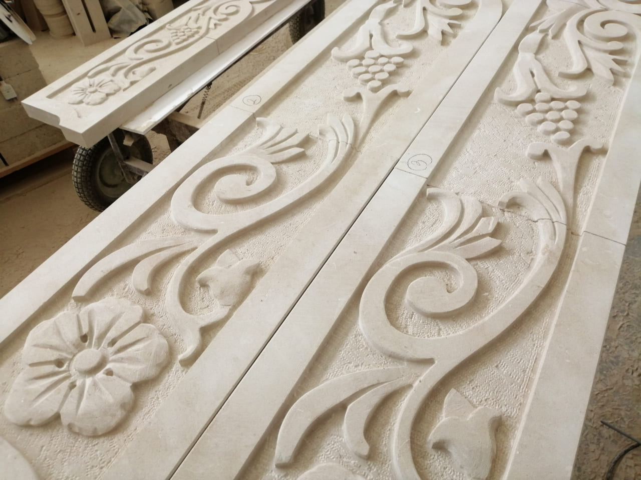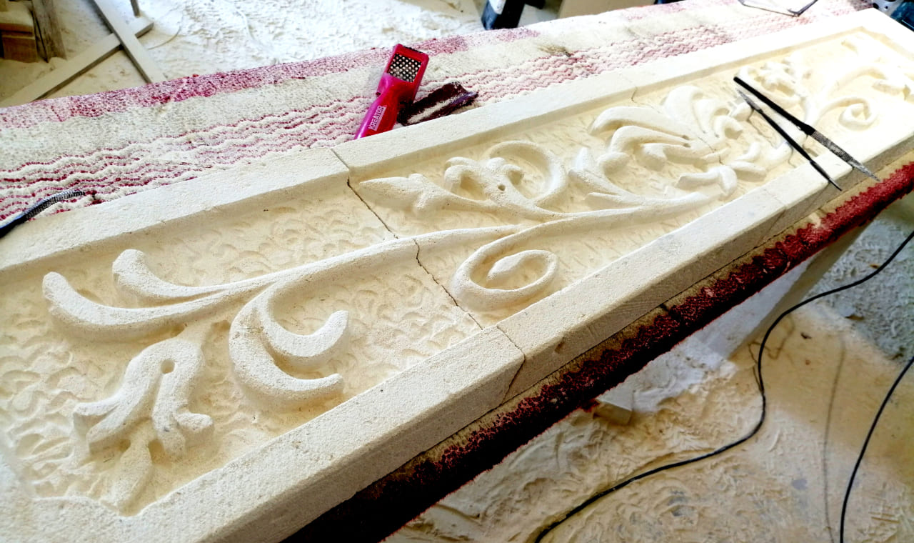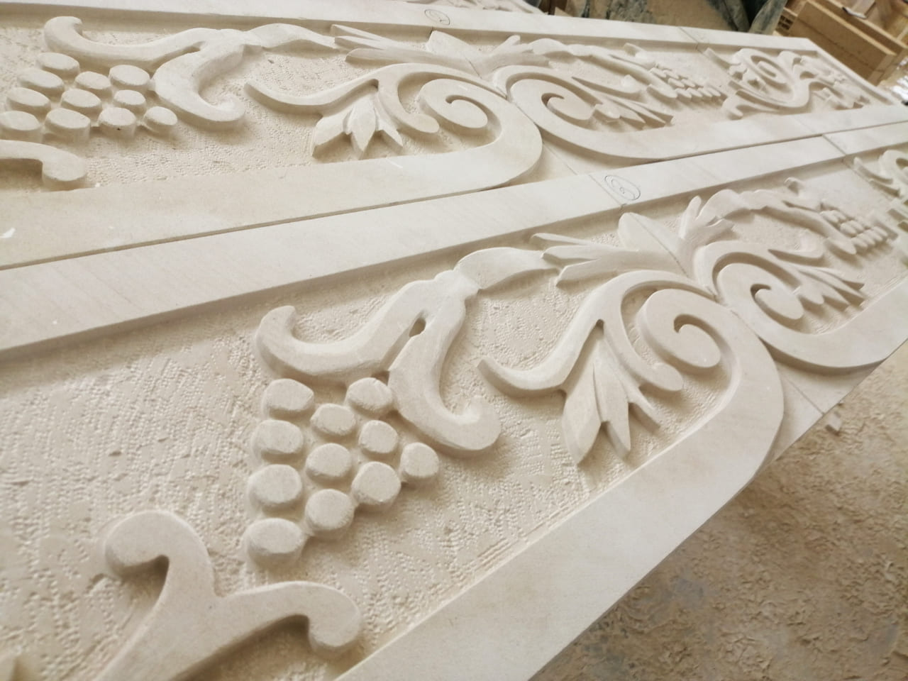 We create frames, friezes, bas-reliefs, pilasters, shelves, and other sculpted features that transform fireplaces, walls, niches, or garden areas into focal points of refined elegance. Each piece is the result of skilled craftsmanship, with carvings, profiles, and finishes tailored to the finest detail.
