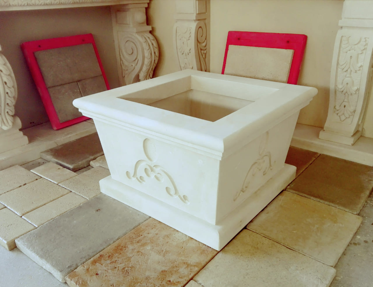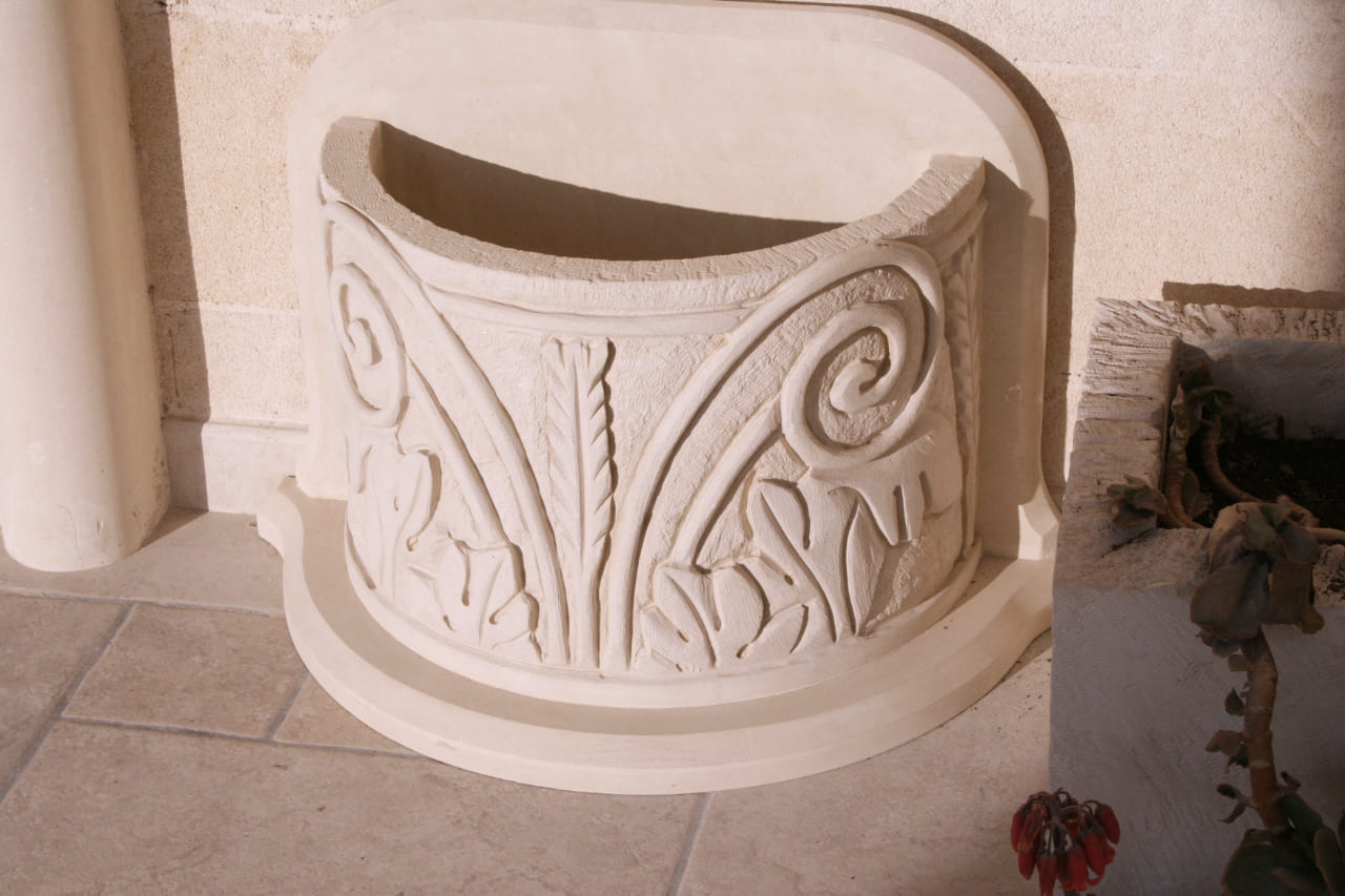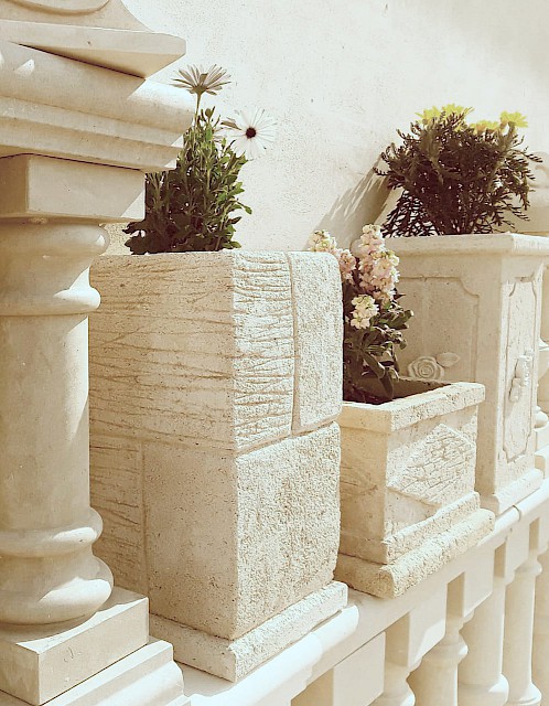 We use weather-resistant stones such as Pietra Leccese, Carparo, and Tufo, which ensure long-lasting durability even in outdoor conditions. Our planters are ideal for enhancing terraces, walkways, courtyards, gardens, entrances, and relaxation areas—transforming any space into a corner of natural beauty.