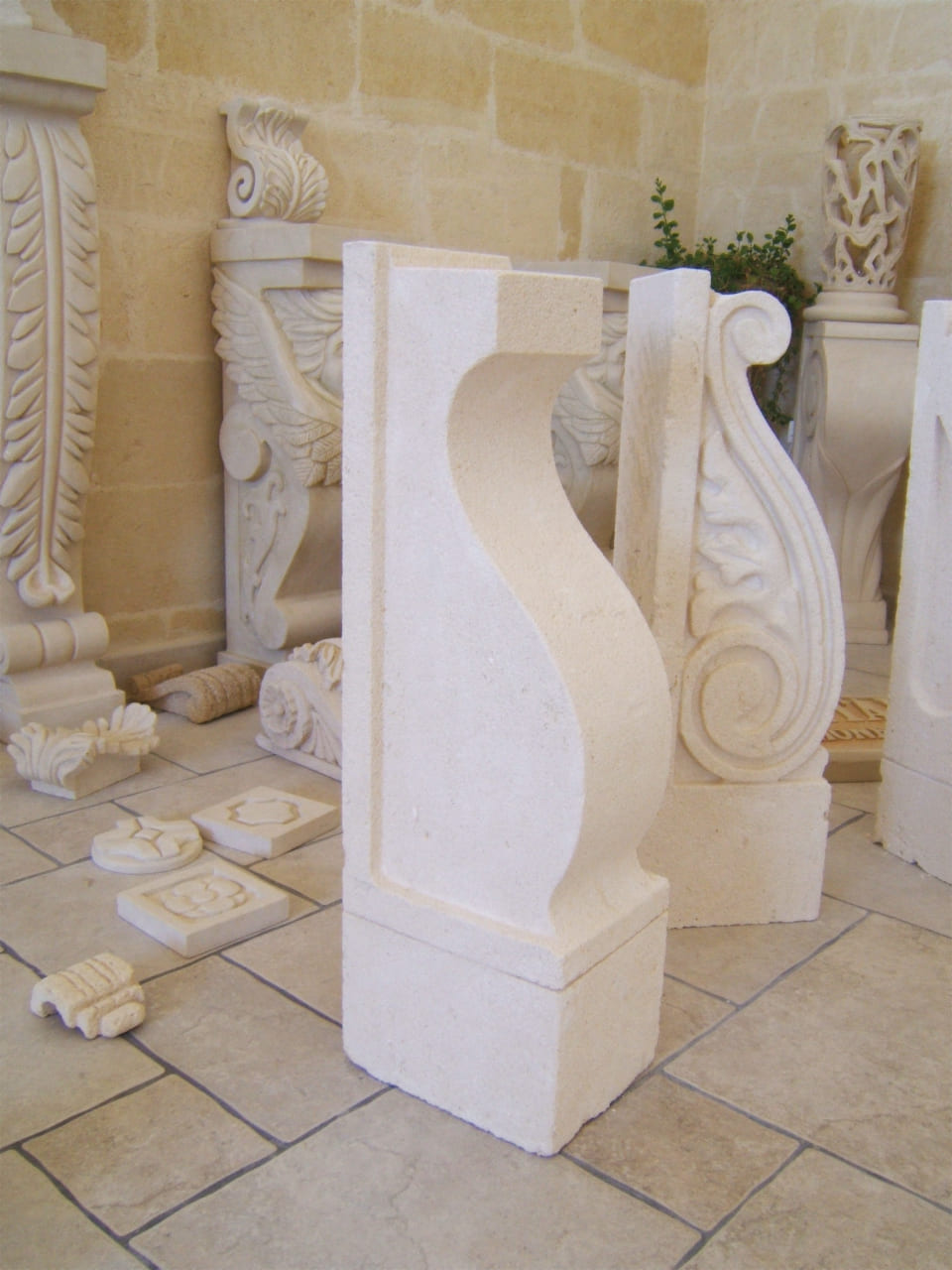 We produce customised and made-to-measure natural stone supporting rafters and balustrades, contact us for a no-obligation inspection or a free estimate, or visit us in our workshop!