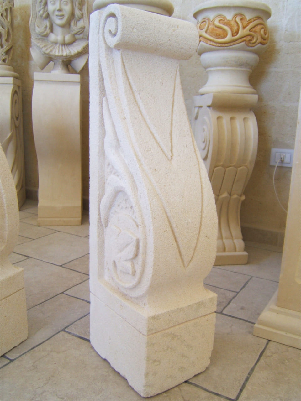 Used as decorative supports for balconies, mantels, shelves, or entryways, our stone corbels stand out for their balance of strength and refined craftsmanship. Thanks to the versatility of natural materials such as Pietra Leccese, Carparo, and Tufo, each design fits beautifully into rustic, traditional, or modern environments.