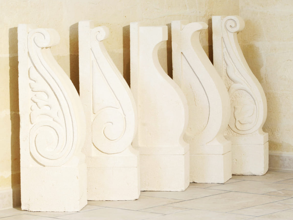 At Forme d'Arte Malorgio, every corbel is custom-made, with personalized shapes, sizes, and sculptural details, creating a unique feature that becomes an integral part of the architectural vision. Each element is one of a kind, enhancing both the beauty and the substance of the project.
