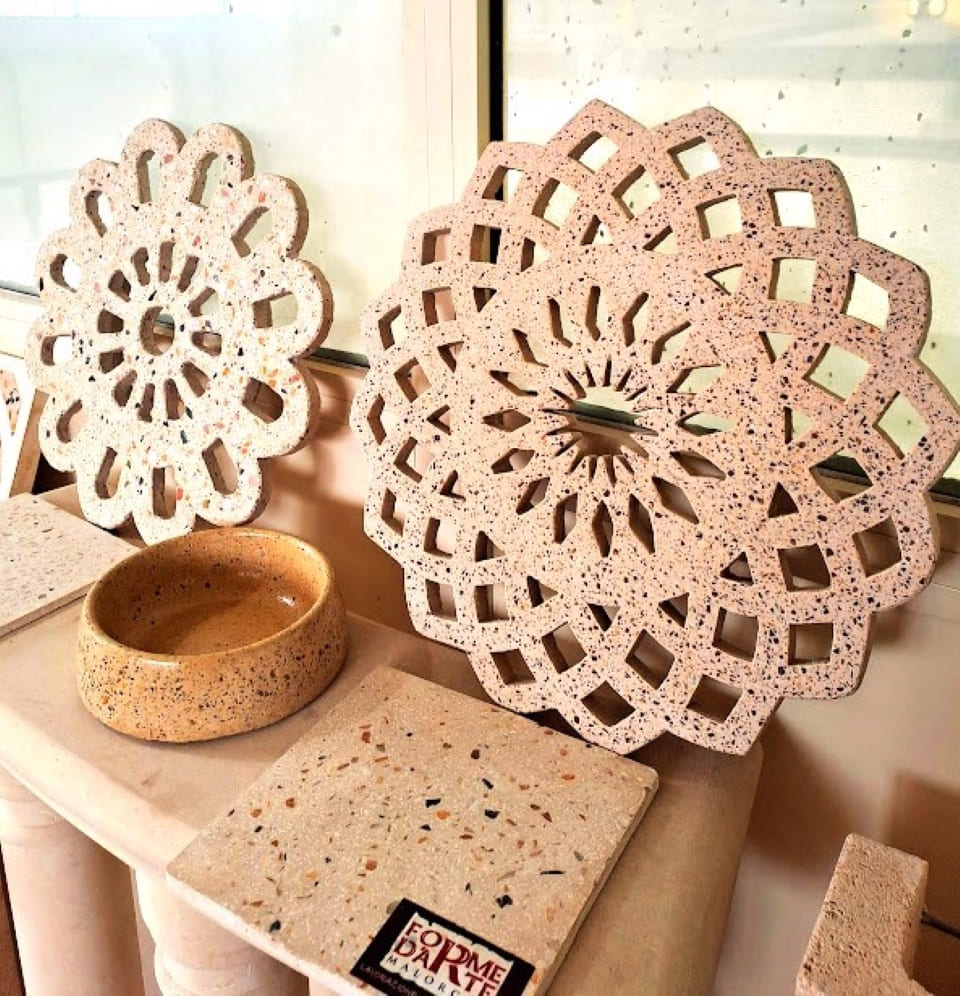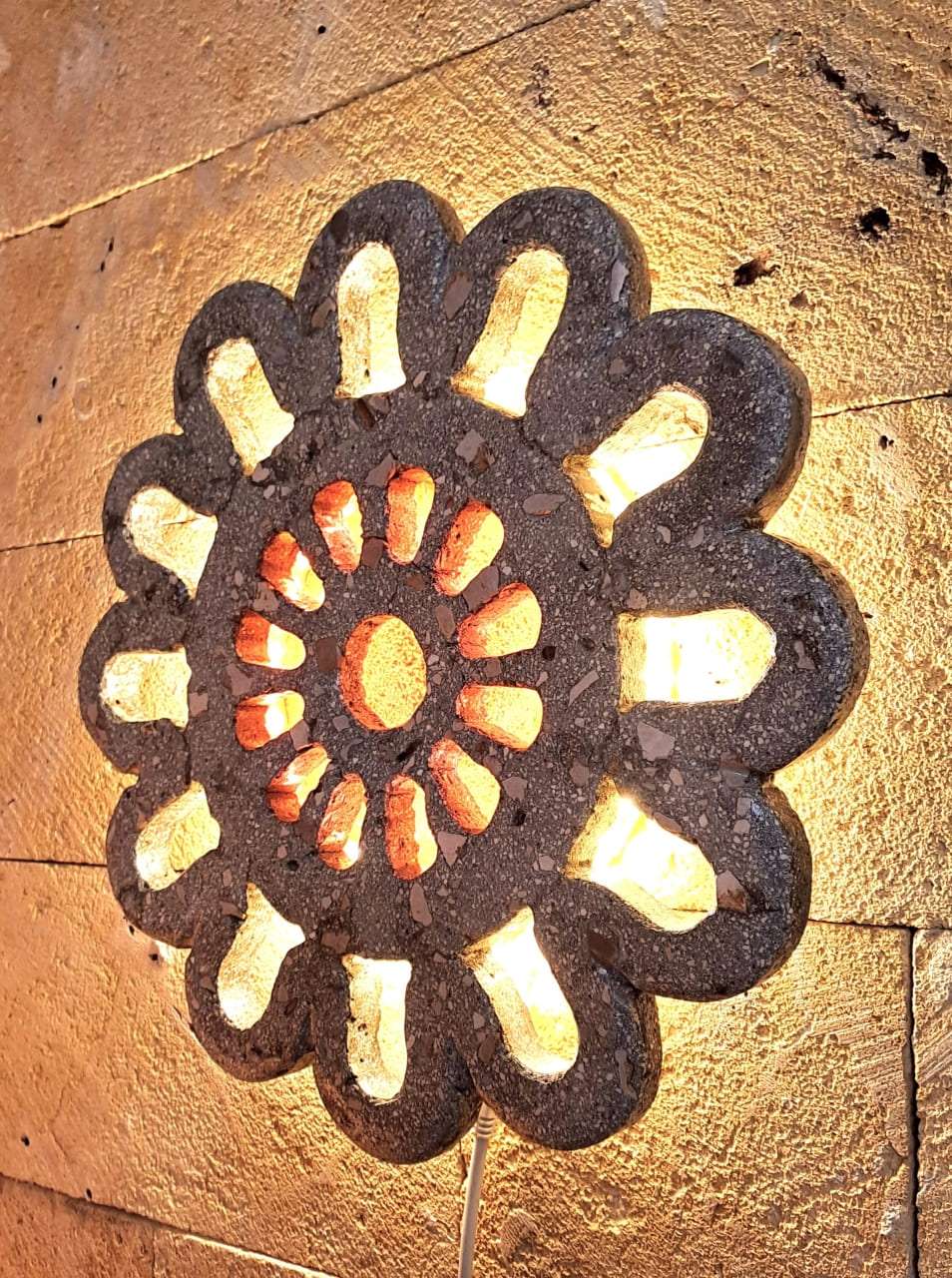 The natural tones of the stone and stone-based materials blend easily into both modern and traditional interiors, making these creations perfect for rustic, contemporary or minimalist design settings. Each rosette is the result of a handcrafted process that makes every piece unique, with small variations that enhance its artistic value. Stone backlit rosettes are ideal as decorative wall lamps, original interior design elements or unique gift ideas for those who appreciate artistic craftsmanship and natural materials. The combination of light and stone creates a piece capable of transforming a simple wall into a striking focal point.
