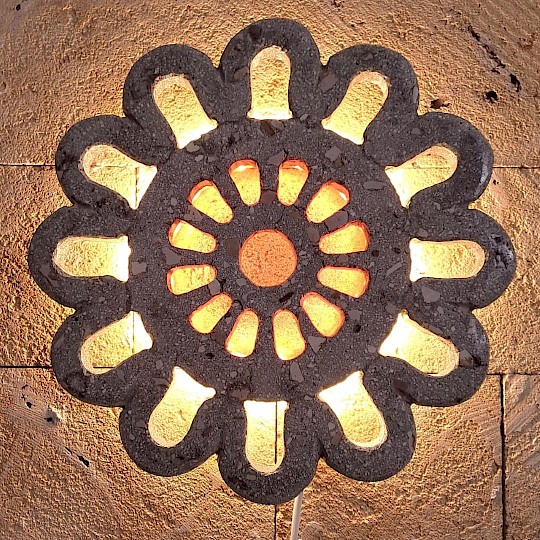 Stone backlit rosettes are elegant decorative elements that combine traditional craftsmanship, design and atmospheric lighting. Inspired by the architectural rosettes found in historic churches and buildings, these decorative pieces reinterpret classical geometric and ornamental patterns, transforming them into unique wall lamps capable of enhancing any interior space.