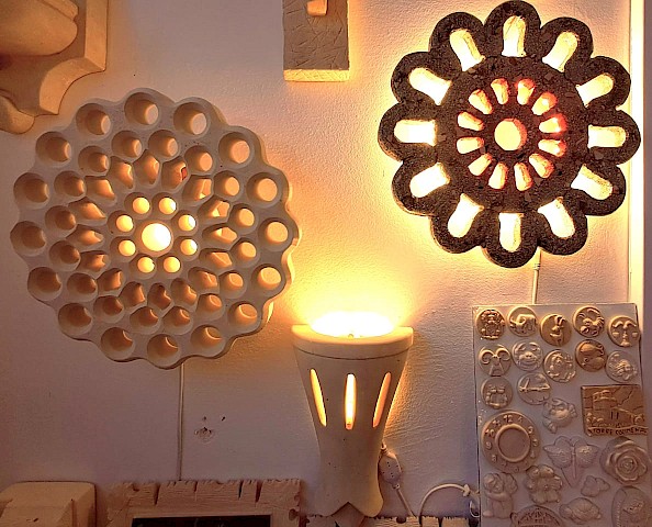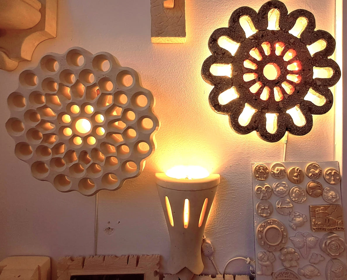 If you are looking for a handcrafted stone backlit rosette, you can contact us for information, custom requests or quotations. Each decorative rosette is handmade using natural stone or stone-based materials, making every creation unique. Some models are also available for direct purchase in our shop online, where you can explore our collection of stone backlit rosettes and decorative stone wall lamps, ideal for decorating and illuminating interior spaces with elegance.