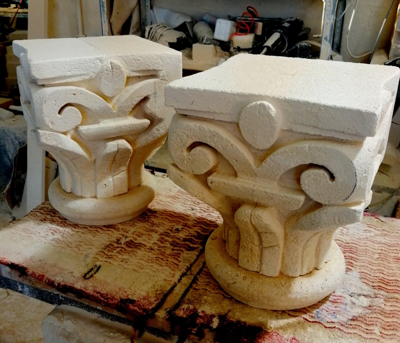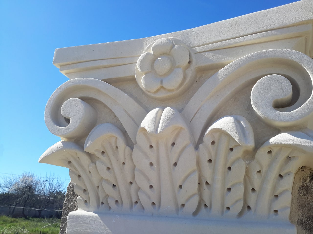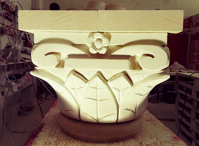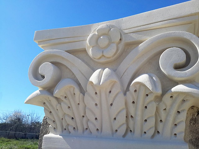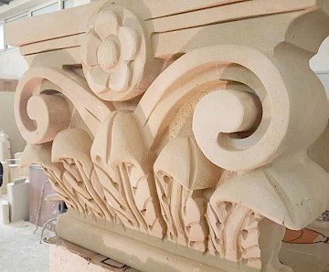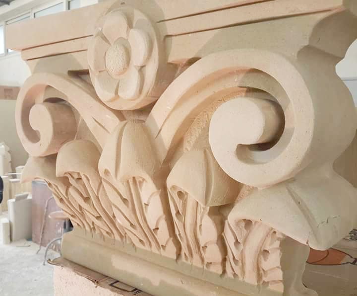 We offer a wide range of styles, from clean and minimalist capitals to richly detailed designs featuring classical motifs, acanthus leaves, symbols, or volutes. Projects can be fully customized and are often developed together with matching stone columns to create cohesive and visually striking compositions.